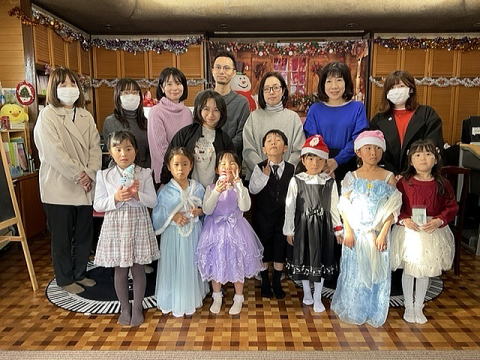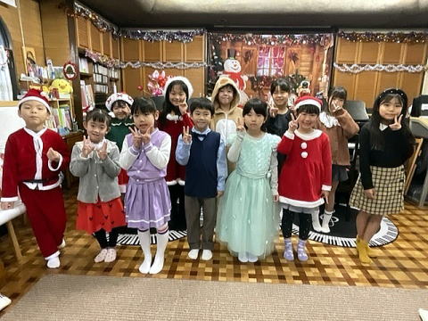 2部はドレス姿の年長さん達。 パパもママも一緒に参加してのクリスマス会なので みんな安心だったね。 でも、一人インフルで欠席なので とても残念でした(~_~;) 演奏も人前でも頑張って弾いたね。 とても上手でした なぞなぞやったり、 年長さんではレベルが高い ロンド形式も楽しく覚えたね。 さかな釣りゲームで楽しく 景品ゲットして大喜び お歌も大きな声で歌えました。 みんないっぱいの笑顔だね(^▽^)/ 2部の様子はYouTubeをご覧下さい |