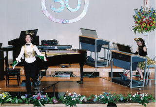 12回目の発表会の開催年が、2000年だったので、「ミレニアムコンサート」と名づけ、バロックから現代までの曲を綴っていった。 ビヴァルディ、バッハ、モーツァルト〜日本の童謡までを演奏した。 全員で歌った滝廉太郎の「花」も2部合唱に分かれて歌った。3歳の生徒さんが「はるのうららの〜♪」と、大きい声を張り上げてとっても元気に歌ったの、とっても可愛かった。 |