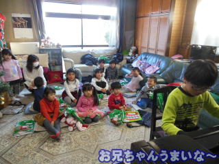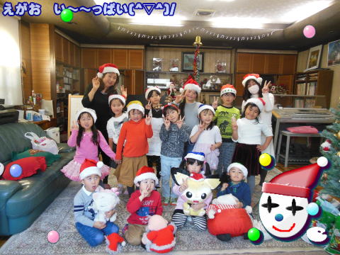 演奏が終わり休憩時間をたっぷり取って、トイレ&お菓子タイム☆ 驚いた事に・・お菓子の食べっぷりが凄い!!!! まあ~~~パクパク食べる食べる・・・geko先生ビックリでした! U君のママから、美味しいポテトの差し入れがありました(o^―^o)ニコ ![]() ケチャップを付けながら皆で、頂きました! とっても美味しかったね。ありがとうございました! 二部は「ビンゴ」をやりたいが・・・年齢的にも無理なので、 geko先生とジャンケンをして勝った生徒さんから、プレゼントを貰う事にした☆彡 いっぱいジャンケンポンをやり・・・ 全員がプレゼントをゲット☆ 皆さんテンションが高まって参りました(笑) 次に〇×ゲーム。 「像の首は長いのである」〇か×か???? 〇が二人いるよ???? 「像さんの首長いの????首が長いのは?」と聞くと 「キリンさん」そうよ、!(^^)! 象さんは・・「鼻が長いんだよね~」とgeko先生が言うと・・納得して笑っている二人でした。 可愛いですね(・∀・) 〇×ゲームで盛り上がった所に、 もう一つ「じゃんけんゲーム」をやる事にした。 チームを二つに分けて、じやんけんに勝つと ピースを一つゲットできる。 ツリーのオーナメントを色々飾って素敵なクリスマスツリーの出来上がり! という仕組み~。 教室に「最初はグー、じゃんけんポン」の声が響き渡る。 いや~~、みんな元気だったね。 こちらのチームが勝って「ばんざい!!!!」 負けたチームは�拍手👏 と和やかな雰囲気で、ゲームも終わり、 とってもとっても元気溢れる歌が教室に響き渡った。 そして全員でクリスマスの帽子を被って写真撮りで~~~す☆ 「はい、チーズ」 最後に去年、忘れてしまった、ケーキを今年はしっかりと配ったOK! 今年も笑顔いっぱいの楽しいクリスマス会だったね。 " ゚☆,。・:*:・゚★o(´▽`*)/♪Thanks♪\(*´▽`)o゚★,。・:*:・☆゚" |