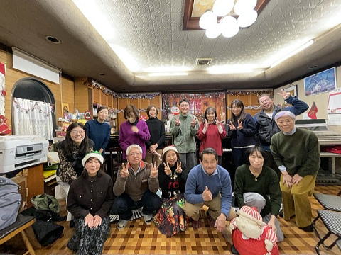 大人の生徒さん達 今回のクリスマス会はフルメンバーが集合しました その後、お茶やお稲荷さん、サンドイッチもあるね!