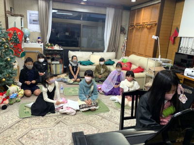 今日は、皆が楽しみに待っていた、クリスマス会☆ コロナ対策に十分気を付けて開催した! 一部は小さな生徒さん、一人欠席で6人だけれど、誰も泣く子もいないで一人で教室に入ってこられた! もう花丸で~~す 窓を開けてパパやママにも見て貰ったね(⌒∇⌒) 演奏も頑張って皆の前で上手に弾けたよ! お歌や紙芝居、ベルの練習なども行った。 魚釣りゲームで順番決めたり、ビンゴの景品ゲットしたり どんどん笑顔がいっぱいになってきたね\(^_^)/ 一部の様子はYouTubeをご覧下さい ↓
